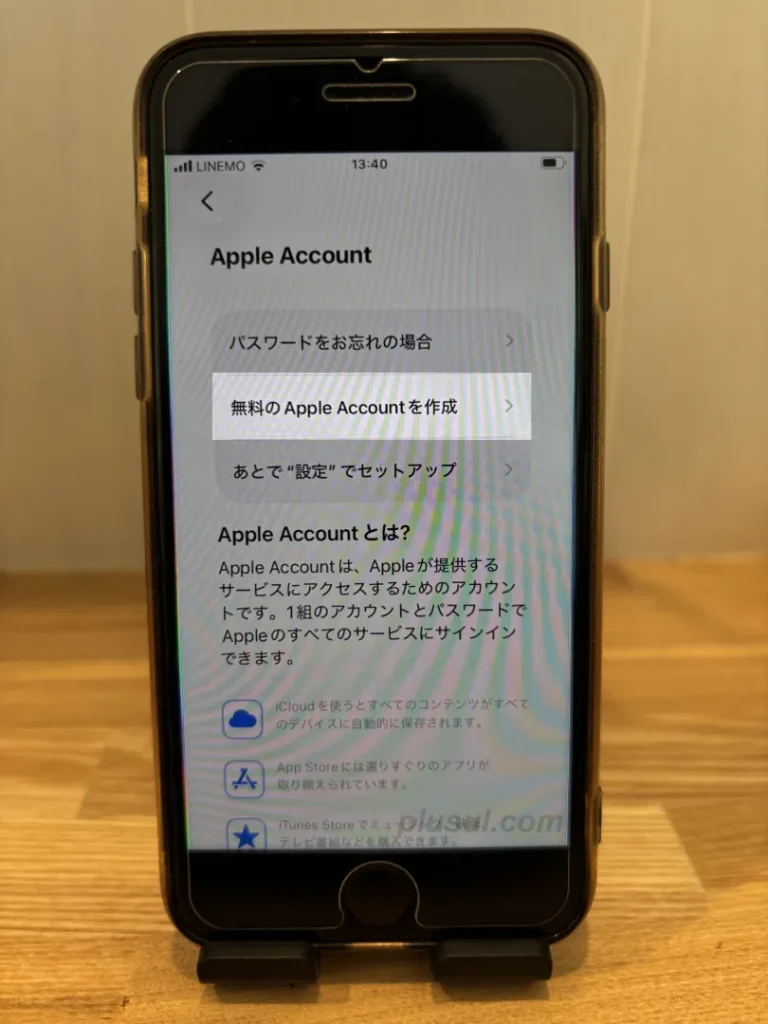 [パスワードをお忘れかアカウントをお持ちでない場合]>[無料のApple Accountを作成]の順にタップして進めましょう。