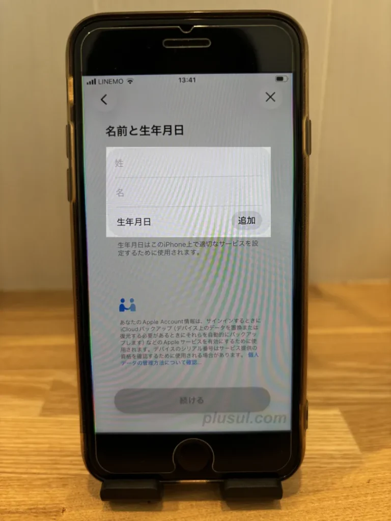 そのままパスワードも決めて、入力が終わったら[続ける]をタップしましょう。