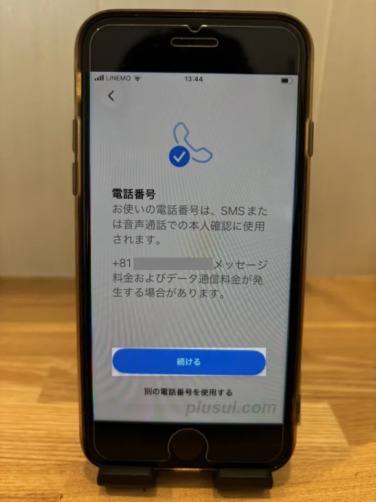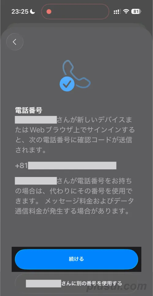 電話番号を確認して、[続ける]をタップしてください。