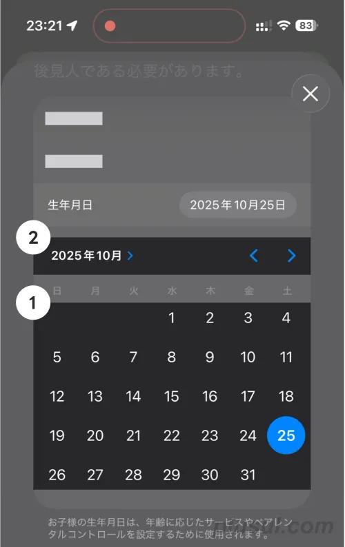 生年月日は初期状態で「今日の日付」が選択されているので、間違えないよう「日付」から選択してください。