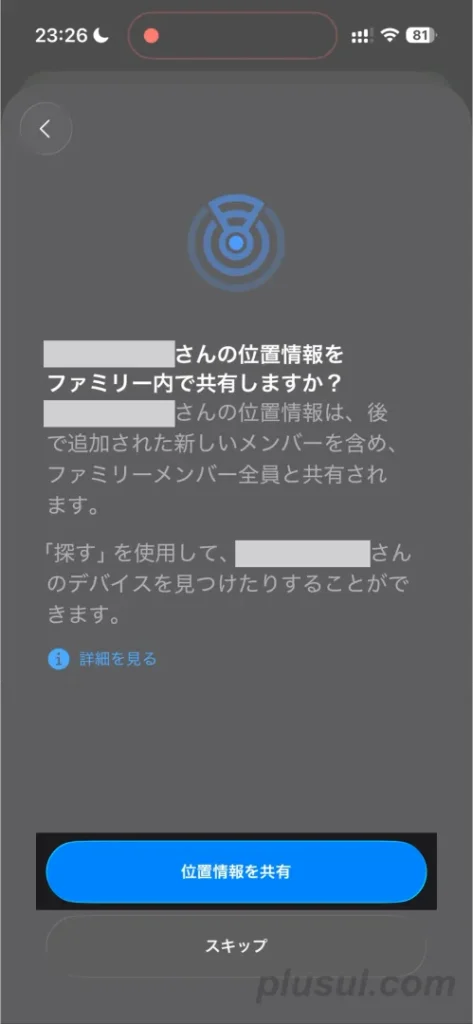 最後に、お子さんの居場所を確認できるよう、[位置情報を共有]をタップ。「完了しました」と表示されたら、お子さんのAppleアカウント作成が終わります。